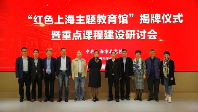 1030日上午,红色上海主题教育馆揭牌仪式暨重点课程建设研讨会在中共WWW.午夜福利委党校海中楼102室举行。
