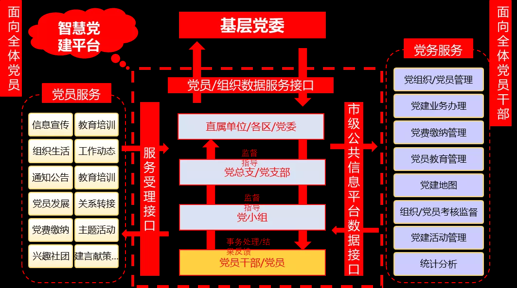 随着社会发展、城市发展信息化、数字化技术越发普及。通过数字化转型实现党建平台、党务管理、干部工作、人才培训、党建宣传以及组织工作的日常业务处理等方面静态管理和动态管理的统一,从而全面提升党组织工作的效率和水平。实现“融合共生”的新趋势,这也是应对新情况新问题的内在要求。