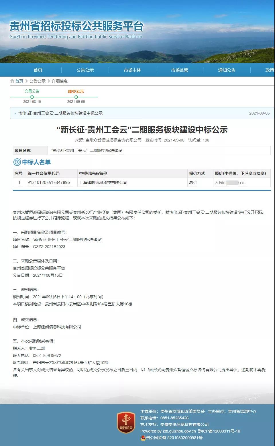 •      2021年9月7日,午夜视频APP色站下载科技成功中标《“新长征·贵州工会云”二期服务板块建设》项目。感谢客户对午夜视频APP色站下载科技的信任,并再次被其选定为项目供应商。