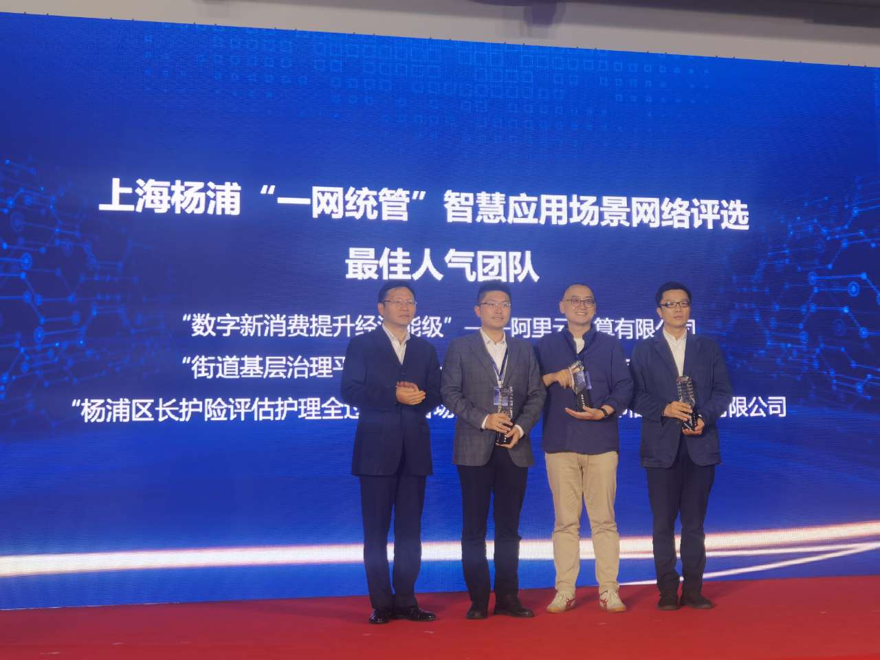 本次杨浦“一网统管”智慧应用场景评选活动共精选了8个应用场景进行网络评选,涉及共享单车、智慧停车、数字经济、垃圾分类、长护险监管、街道基层治理、12345热线、电梯运维管理等城市治理领域。根据票选结果,杨浦区长护险评估护理全过程监管场景名列前三,我司作为承建技术团队荣获上海杨浦“一网统管”智慧应用场景网络评选“最佳人气团队”奖,董事长赵巍应邀出席并代表公司上台领奖。